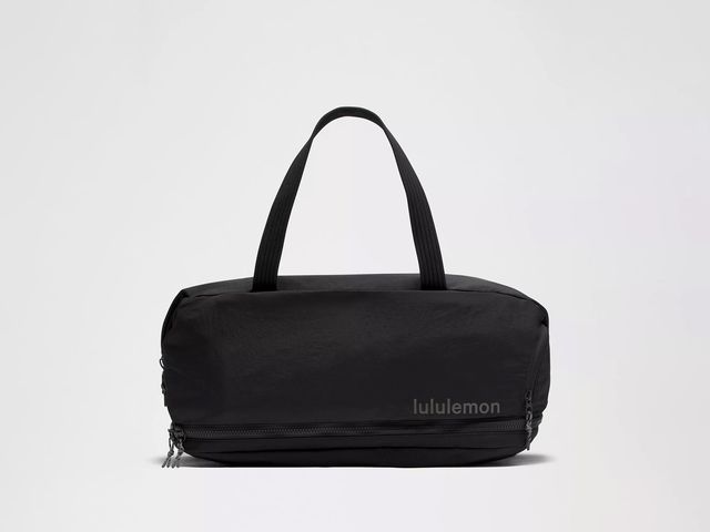 Don’t let this bag’s compact shape fool you—it holds much more than it appears to. You can toss in a pair of shoes, clothes, and toiletries and still have plenty of space left. The water-resistant fabric is a key feature if you’re commuting through unpredictable weather (hi, Midwest winters). True to its name, it can be carried three ways: by the top handles, crossbody with the detachable strap, or—my favorite—the strap by itself doubles as a yoga strap when you just need to haul a mat. It’s super-stretchy and cushioned, making it comfortable to use for stretching as well.