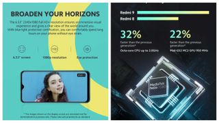 Interestingly enough, the promo material all but confirms Mediatek’s Helio G80 SoC which is different from the CPU leaked earlier. There are other variants in the series as well which, like the Redmi 9C, is also likely to have MediaTek CPUs. The listing claims a 214% boost over the previous Qualcomm Snapdragon 439 on the Redmi 8.