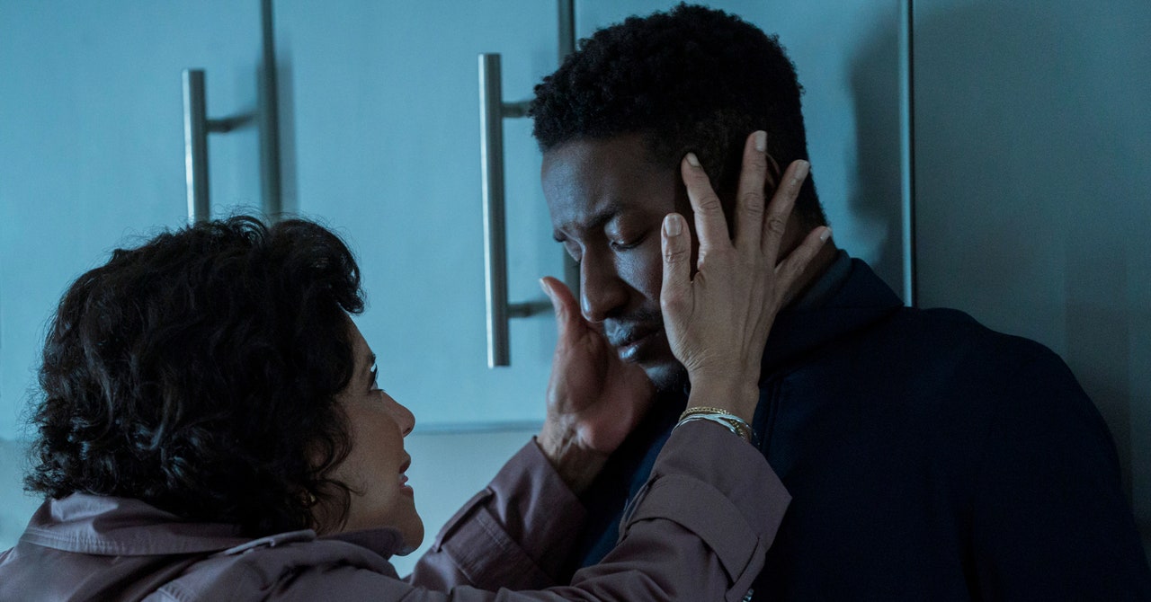 Athie and Rashad both deliver committed performances of the pulpy material, almost good enough to excuse the movie’s silly-looking special effects and patchy writing. Early on, Black Box suffers from showing its “monster” too frequently and not making it horrifying at all. A creepy faceless being in a suit skulks around the edges of Nolan’s subconscious; if he hangs around in a memory long enough, the being crawls into the frame and then tries to choke him. The being makes a sickening bone-crunching sound as it crawls, which is appropriately creepy, but it also moves at such a slow pace that one wonders why Nolan’s dream-self doesn’t just slip on some headphones and walk in the other direction. At one point, he finally does simply kick it out of the way, an inadvertently comic moment.