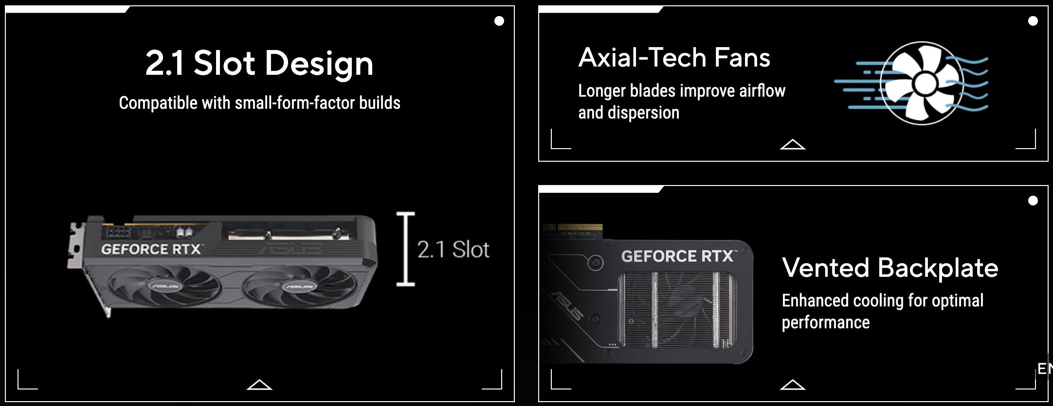 The most noticeable change is size. Both EVO cards use a slimmer 2.1 slot design instead of the 2.5 slot layout used by earlier versions, making them more suitable for compact PC builds. ASUS also redesigned the PCB to use a shorter PCIe x8 edge connector rather than a full length x16 connector (via Vortez).