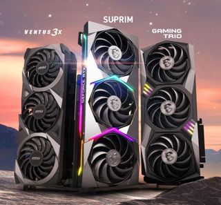 A mid range card with a triple-fan flagship design. One of the quietest gaming cards you’ll find and punches well above it’s weight.