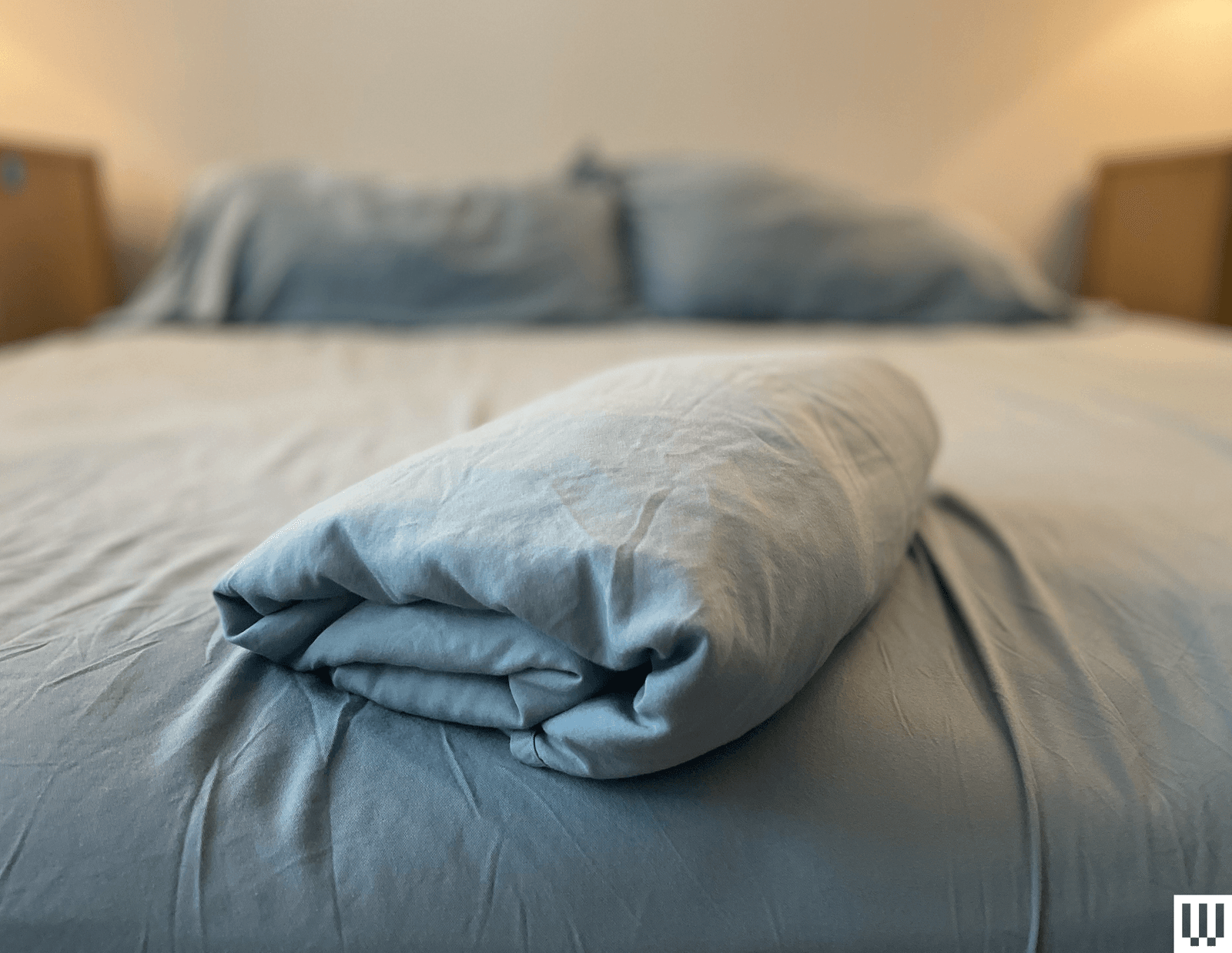 I’m not usually one on the hunt for certain colors or patterns, as a standard white or gray is just fine by me. But in this particular case, I decided to mix things up and get a deep blue set. It has an ever-so-slight sheen to it, which, coupled with the heftier weave and threads used, makes them feel expensive.