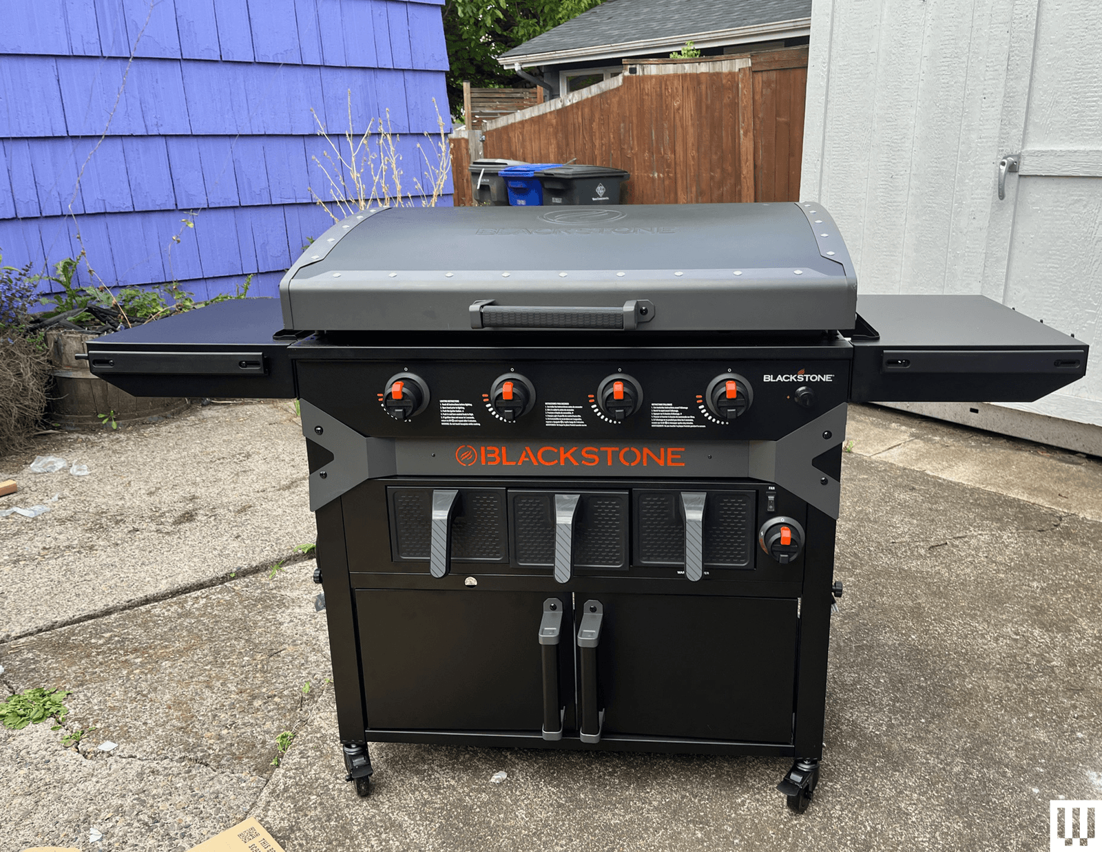 Both Weber and Blackstone make backyard standup griddles (see our review of a Weber from 2023). But only Blackstone, to my knowledge, makes a rolled-steel griddle with a dual-basket air fryer underneath it.