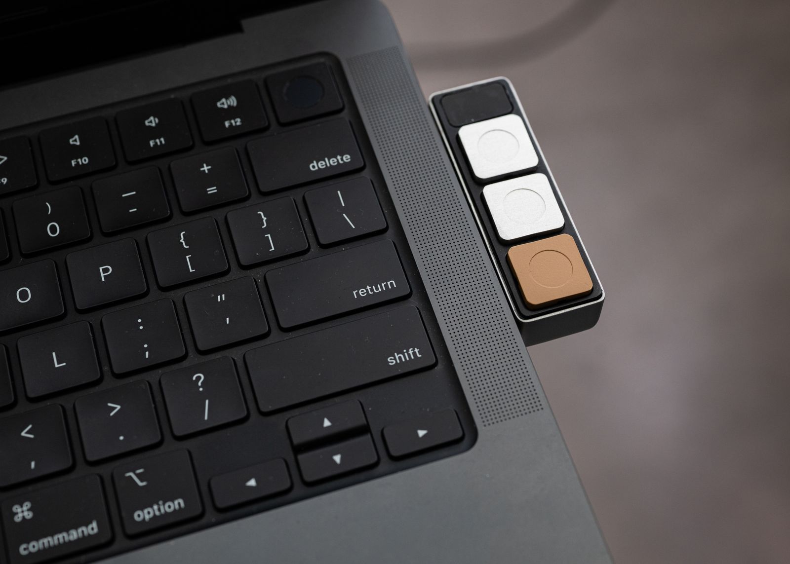 At CES, Shankar’s company showed off three concept devices that may end up as real products, though Shankar couldn’t provide a timeline. The first is Dune, a simple three-button device that pairs with your Mac or Windows laptop via Bluetooth, and it’s all about shortcuts. It’s context-aware, meaning it’ll learn frequent shortcuts you make on apps and websites and will suggest them for each of the three buttons. (Naturally, you can set them to do specific things too.) It’s battery-powered, so you can place it anywhere. (You can also plug it into your laptop to recharge it, like in the picture above.) These shortcuts can be as simple as copying to running multi-step actions.