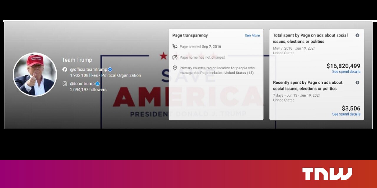 Quick take: This is a bunch of crap. Despite Trump’s ban, the former president can buy all the targeted ad space he wants on the world’s largest platform. The fact that Facebook sucks this badly at banning Trump makes it seem like this isn’t an accident.