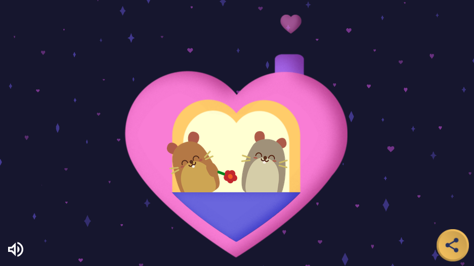 Well they almost do – and that’s where you come in. By using a series of levers and switches, you must line of the tube pieces that complete the first ‘O’ in Google, the bottom of the second ‘G’ and the ‘L’. It may look a bit complicated, but the puzzle takes less than a minute to complete and, once you do, the hamsters run through the tubes to be reunited in the middle heart, with a ‘Happy Valentine’s Day’ appearing on the screen. It’s a pretty simple game but it sure is adorable.