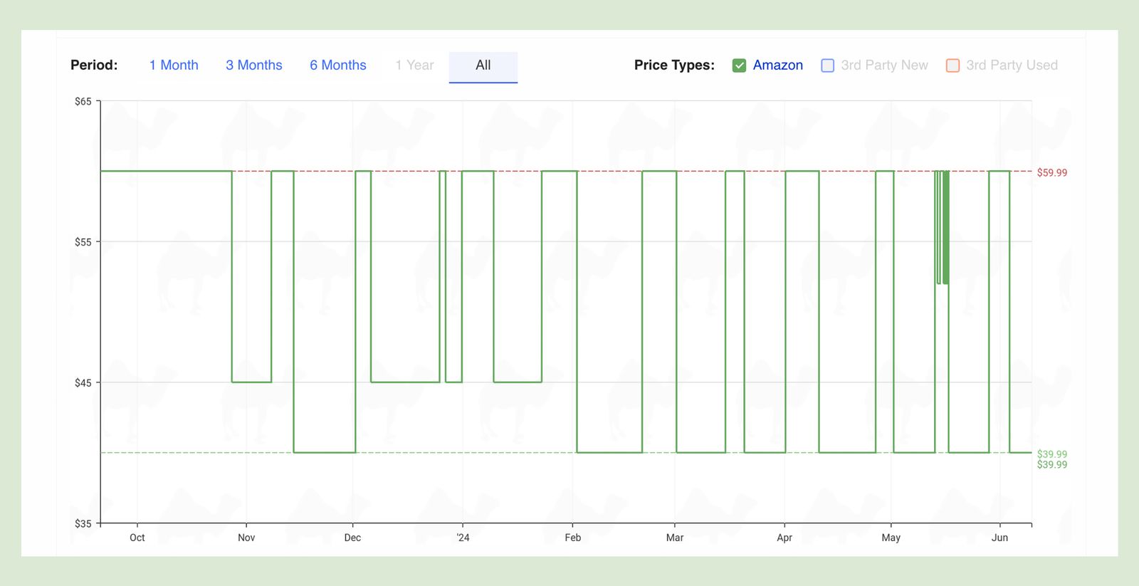 Luckily, there’s an easy way to check. Just copy the URL and paste it into CamelCamelCamel. You’ll get a page with a graph on it showing every price fluctuation in the past year. A lot of products have deceptive sale prices like this, to varying degrees. Knowing what the actual going rate is for a product puts you in charge.
