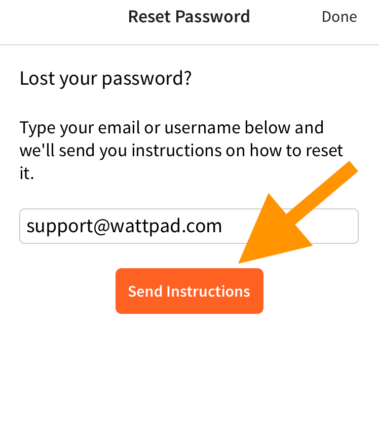 On the next page, enter your Wattpad username or the email you used when you signed up with the service. Click Send instructions, and Wattpad will send you an email with a time-sensitive link to reset your password. Click on Reset My Password in the email, and you’ll be brought to a form where you can enter a new password.
