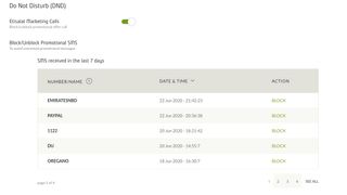 Below this, you’ll find a list of all the SMS messages you’ve received in the past 7 days. For any sender that you want to block, simply find them on the list and click the ‘Block’ button. The system will prompt you to confirm the block, and once you select Yes, you’ll get an SMS that the block has been applied.