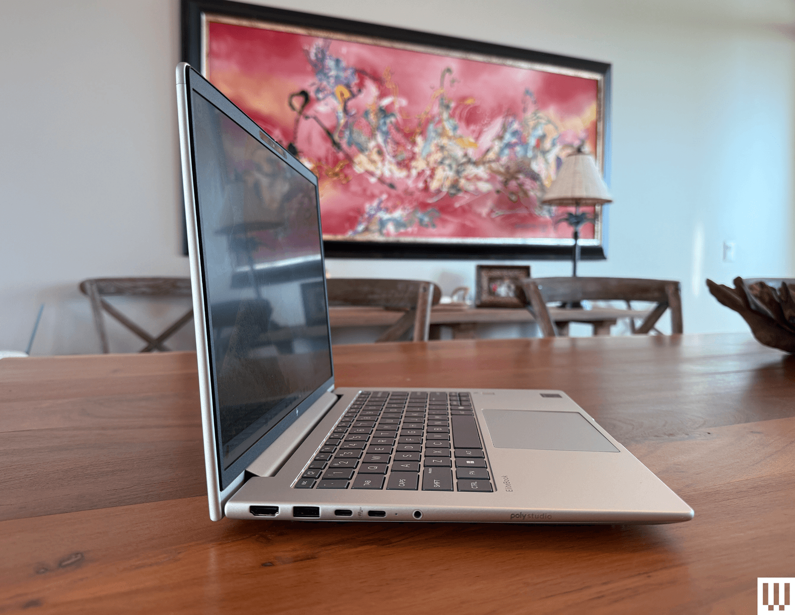 Port selection is also solid, including two USB-C ports with USB4 support, two USB-A ports, a full-size HDMI jack, and a drop-jaw Ethernet port. The SIM card slot is also accessible from the side of the device; users can bring their own data plan if they don’t want to use the multicarrier HP Go, which works via eSIM.