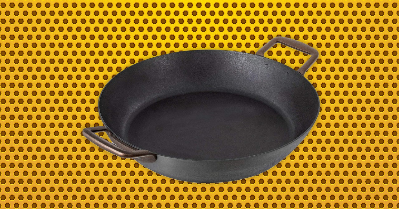 The pan in question is the Swiss manufacturer’s Black Star, a 9-pound skillet in the size I tested, with a 24-centimeter cooking surface that’s 32 centimeters from rim to rim. It’s functional and good-looking, and at just over 9 pounds, it weighs a lot, even compared to the competition. At $250, too, it certainly costs a lot, especially when compared to something like a classic Lodge cast-iron pan, which weighs about a pound less and costs a mere fraction of the import.