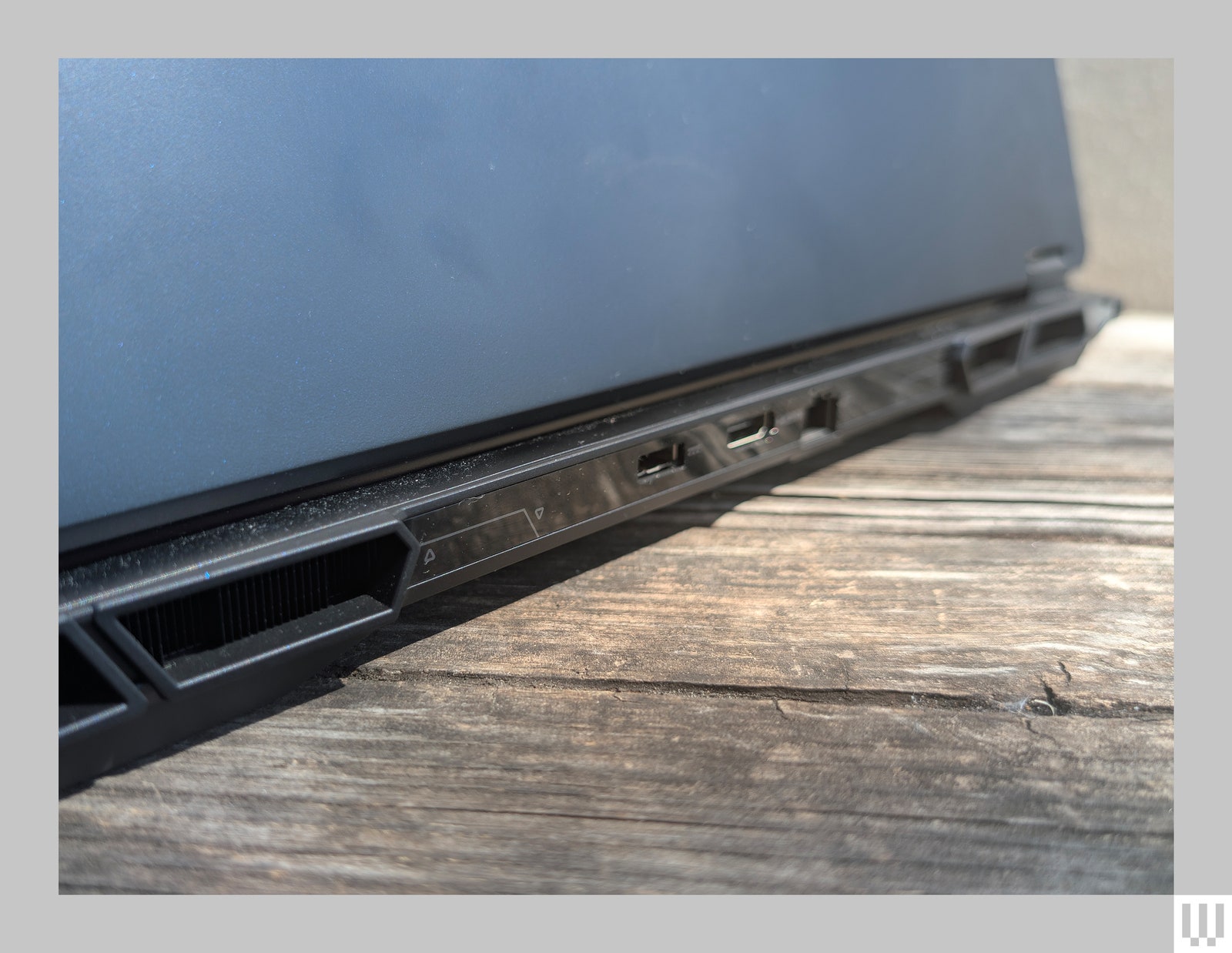 There’s an Ethernet port, HDMI port, and the proprietary charging port on the rear of the device, which is an incredibly convenient location for plugging the laptop into a desk workstation. It’s not quite as convenient as a laptop docking station, but it’s less cluttered than cables sticking out the sides. I’m also a fan of the dedicated fingerprint sensor, which makes it easier to sign in to Windows and unlock password managers.