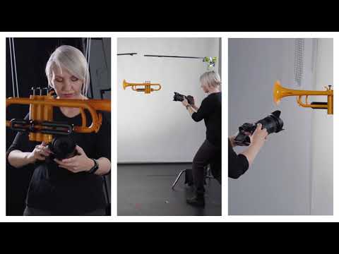 The instruments were then edited and given new materials. The trumpet, for instance, was transformed from cheap plastic to lavish gold.