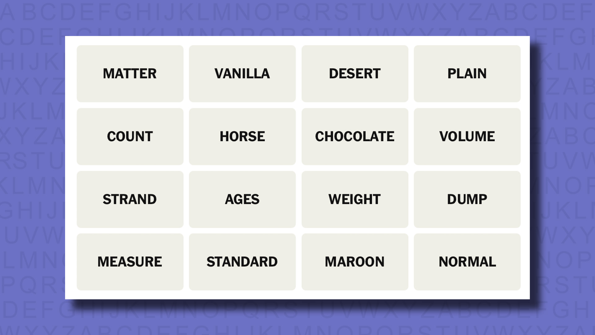 NYT Connections is one of several increasingly popular word games made by the New York Times. It challenges you to find groups of four items that share something in common, and each group has a different difficulty level: green is easy, yellow a little harder, blue often quite tough and purple usually very difficult.