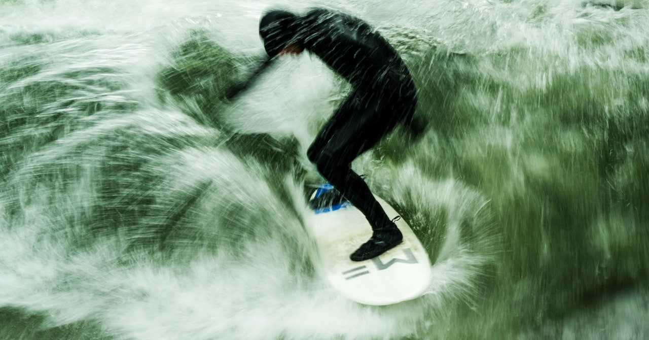 Now, suppose you are really off the grid and wanted to make waves with human power. Obviously you can’t pull a hydrofoil by yourself. But maybe you could pedal a bike to raise some large mass using pulleys, and once the mass had enough energy, you’d let it fall and pull the hydrofoil. Let’s say this whole system is 50 percent efficient, so that you would need to produce enough energy to store 32 million joules.