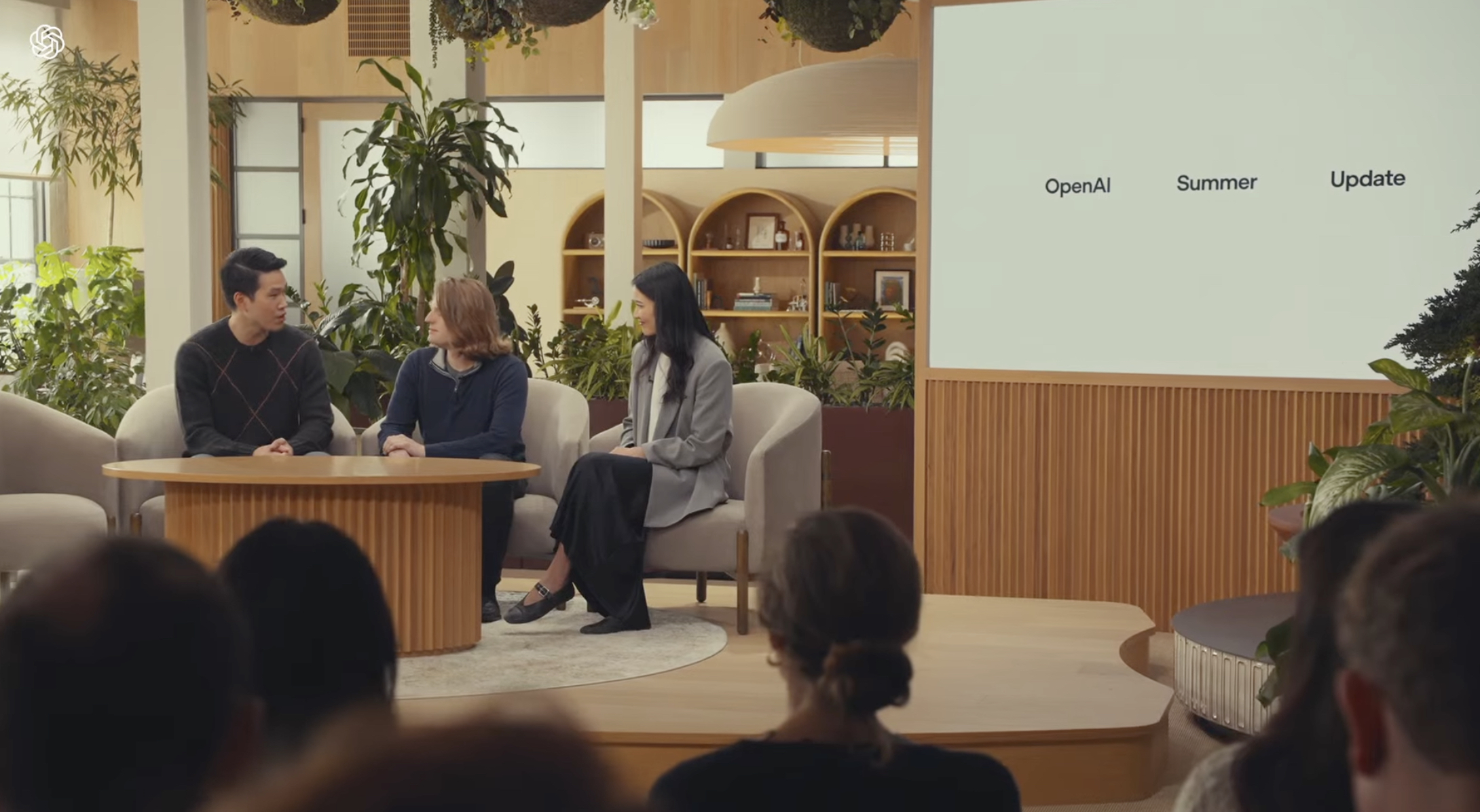 OpenAI has officially kicked off the livestream with under 10 minutes to go until 1PM ET/ 6PM BST. Right now, we have some sonically soothing sounds over “OpenAI Summer Update” flashing with colors and then spinning in circles on the screen. No mention of GPT-5 though.
