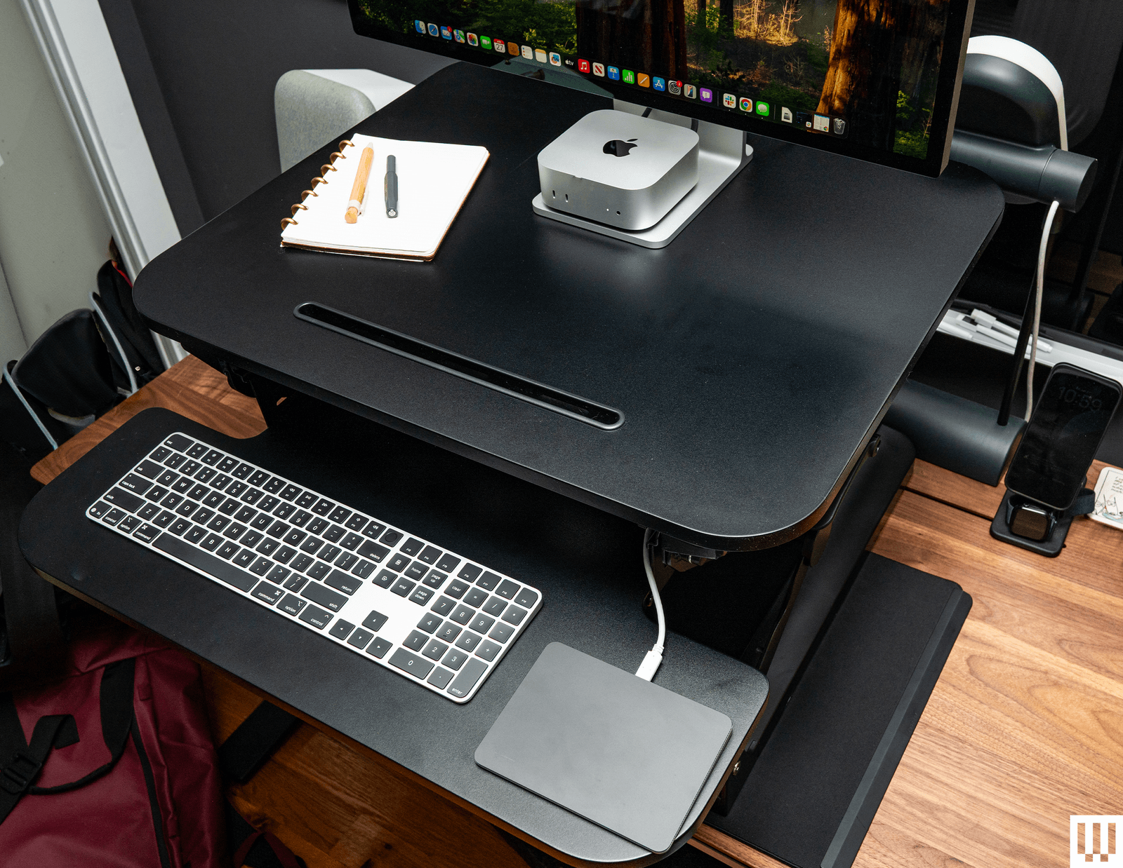 The FlexFit does the job—plop it on a surface, and you’ll be able to bring your workstation up to use while standing, or down to use while sitting. Just remember that you shouldn’t be sitting all day, but you shouldn’t be standing the whole time either. Mix it up, and take frequent breaks with short walks if you can.