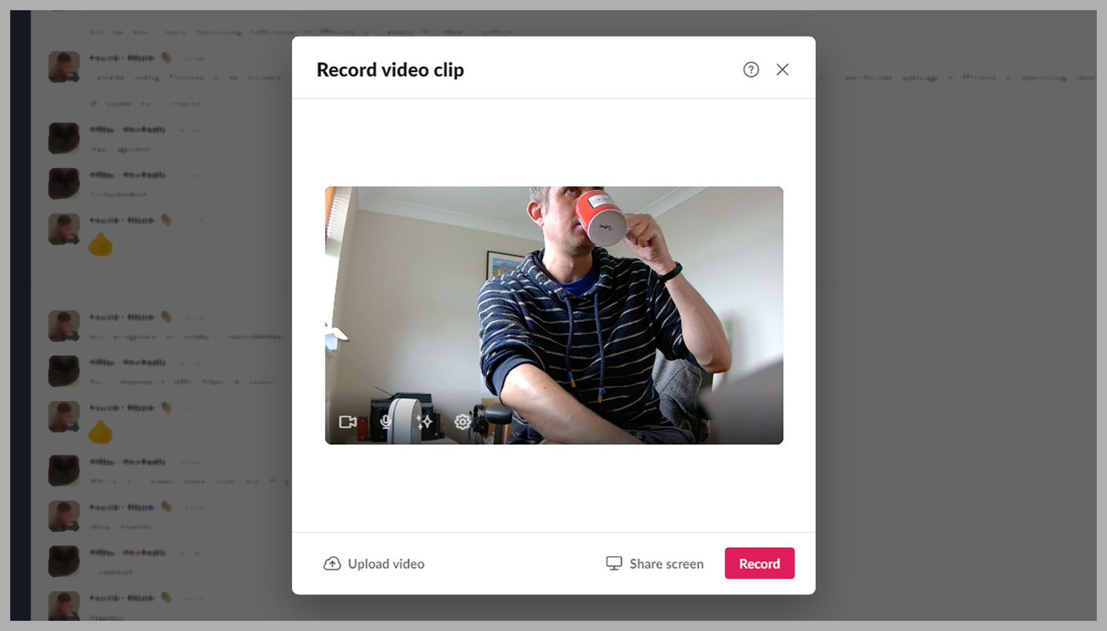 Over in the web and desktop clients for Slack, you can click the “record a video clip” button at the bottom of any conversation—it’s the button that looks like a video camera. On mobile, tap the + (plus) button to find the option. The clip can include screen sharing, and can be up to five minutes long—you’re able to review it afterward, and as on Teams, you can simply upload an existing video file if you prefer.
