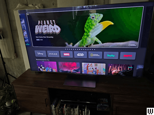 One of the QM8K’s most striking features is the complete lack of bezels, giving your entertainment stand a modern and distinctive look. With the included pedestal mount, it almost looks like it’s floating, a neat trick for such a well-priced television. While there may be some personal preference when it comes to the interface, we generally feel that Google TV is one of the better options right now, and it supports both Chromecast and Airplay 2, so Apple folks won’t feel left out.