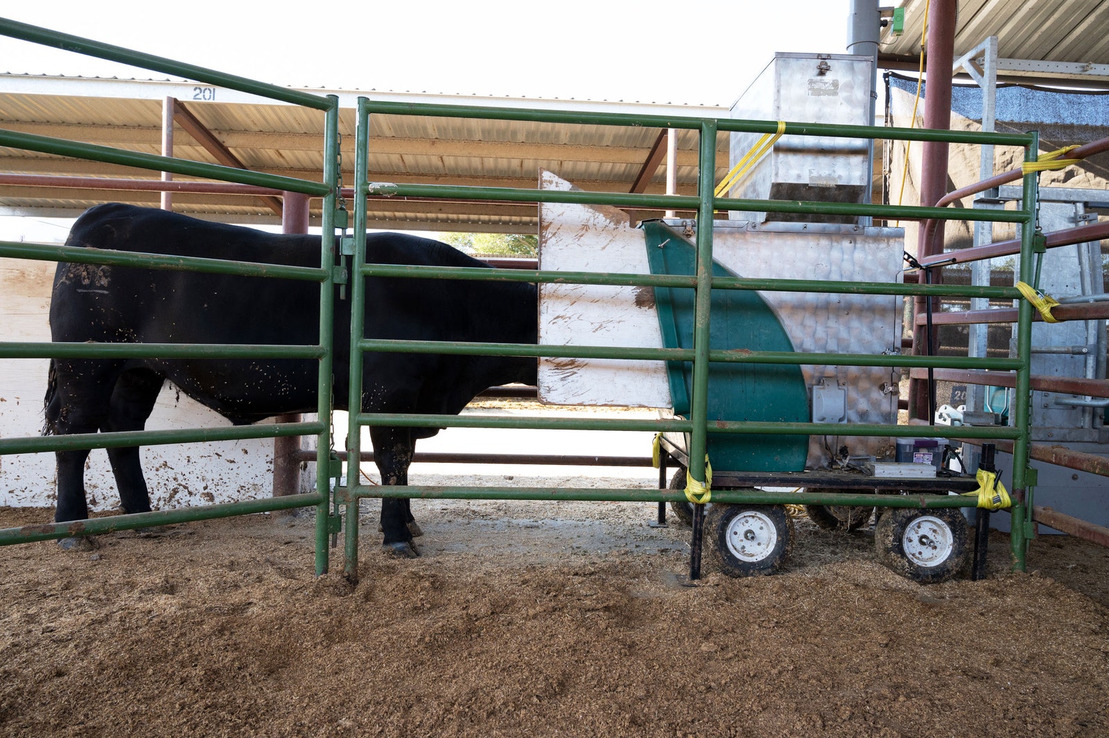 It’s an oppressively hot morning in the barnyard, even in the shade of the long open-air structure where the cows come to feed. On a typical farm, they would gather around a trough, but here at UC Davis they chow from special blue bins, which detect when and how much each one eats. It’s like Weight Watchers, only researchers here aren’t so much interested in these cows’ figures, but how much they burp.