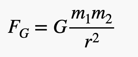 In this expression, G is the universal gravitational constant with a value of 6.67 x 10-11 N*m2kg2—at least that’s its value here in the real world. But notice that the gravitational force decreases with distance. That’s important.