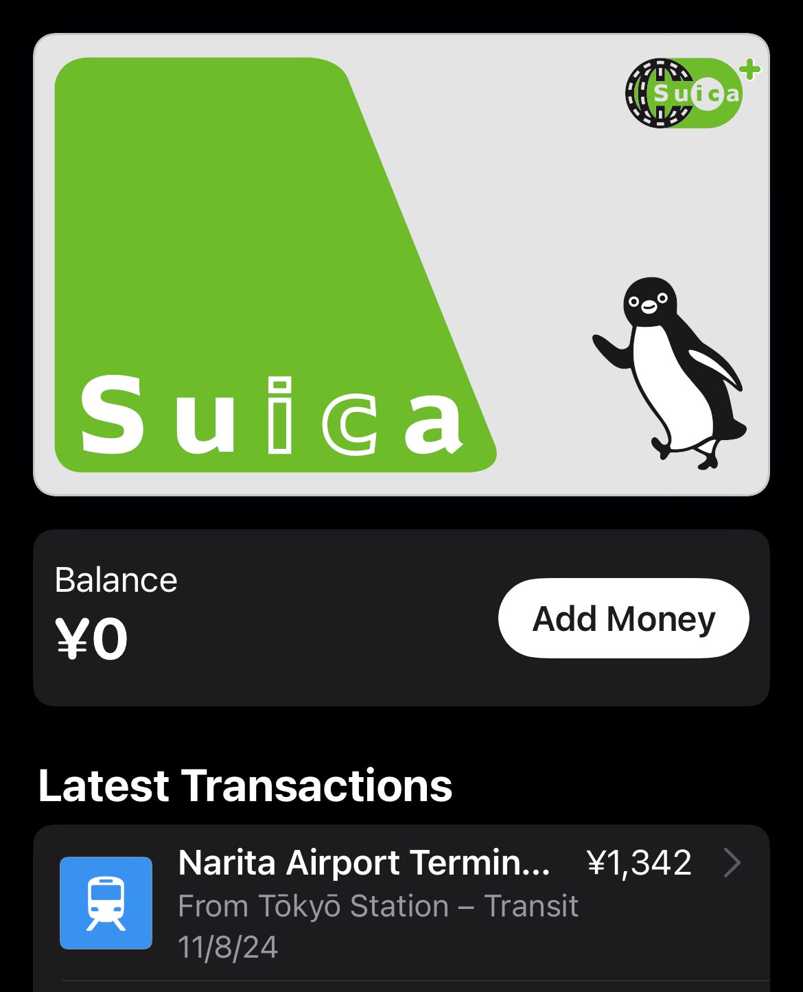 A Suica card can be used to board many (but not all) of the public transport options in Japan, and the digital wallet version is worth checking out. Unfortunately, this option is only easy for travelers with iPhones to use. So, unless you purchased a phone in Japan, using the digital option is not feasible on Android. But no worries, go ahead and skip down a paragraph to the physical “Welcome Suica” option to prepare for riding the trains.