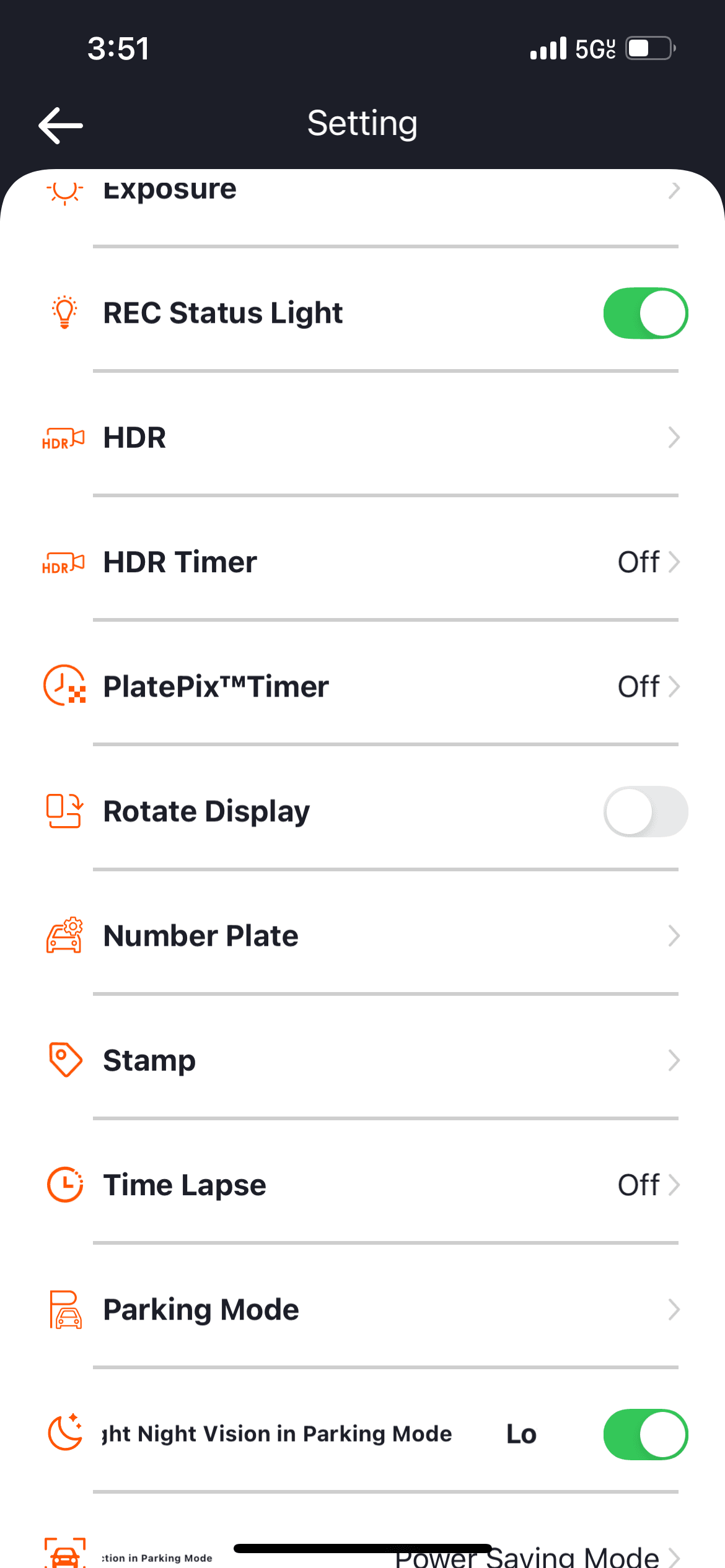 There are, in fact, settings aplenty. Through the app, you’re able to track mileage, toggle GPS tracking, set the frame rate and resolution of the camera, and set whether you want the camera to use high-dynamic range settings or PlatePix. The former will be most useful when light is dim.